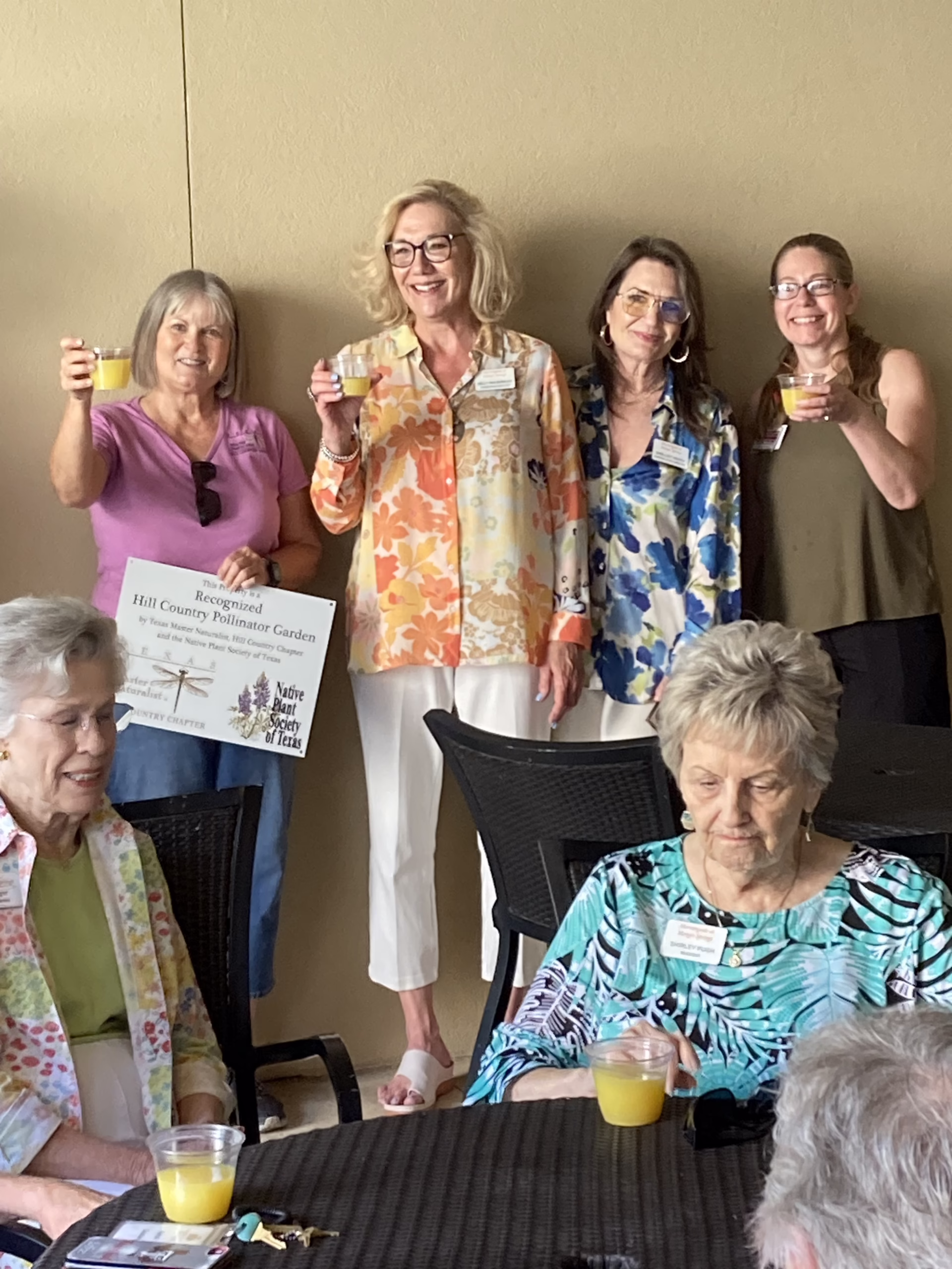 Because of her extensive research into native plants and the benefits for pollinators, as well as learning from her friends in NPSOT, she became a volunteer for the Pollinator Garden Assistance and Recognition Program. There are about 12 to 15 volunteers who work in teams of three in the Boerne and Bandera area to educate homeowners. In fact, after Kathy’s conversion to a native plant landscape, her property was recognized as an official Hill Country Pollinator Garden.