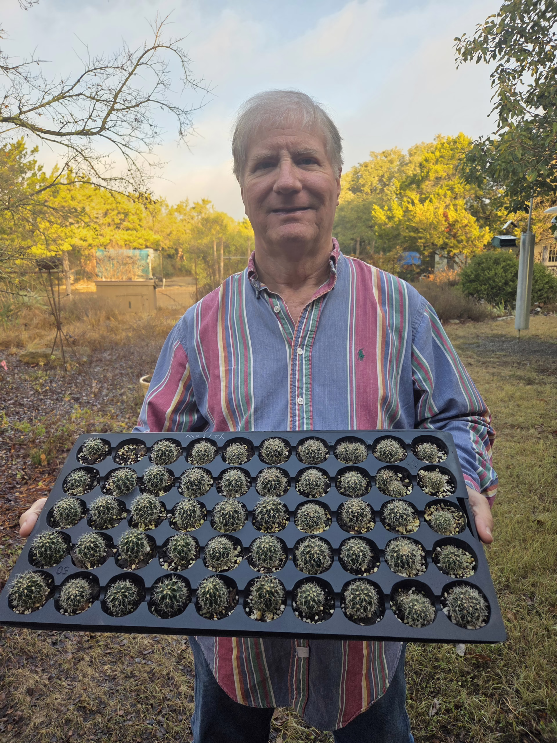 I also have started growing some of the small native barrel type cactus (claret cup, lace cactus and several others) from seed. Over the years I have gotten many natives started and they have thrived to the extent that they are now seeding out at various locations on my 3 acre plot and if they are in a place I don’t particularly want them to be, they become candidates for our plant sales.”