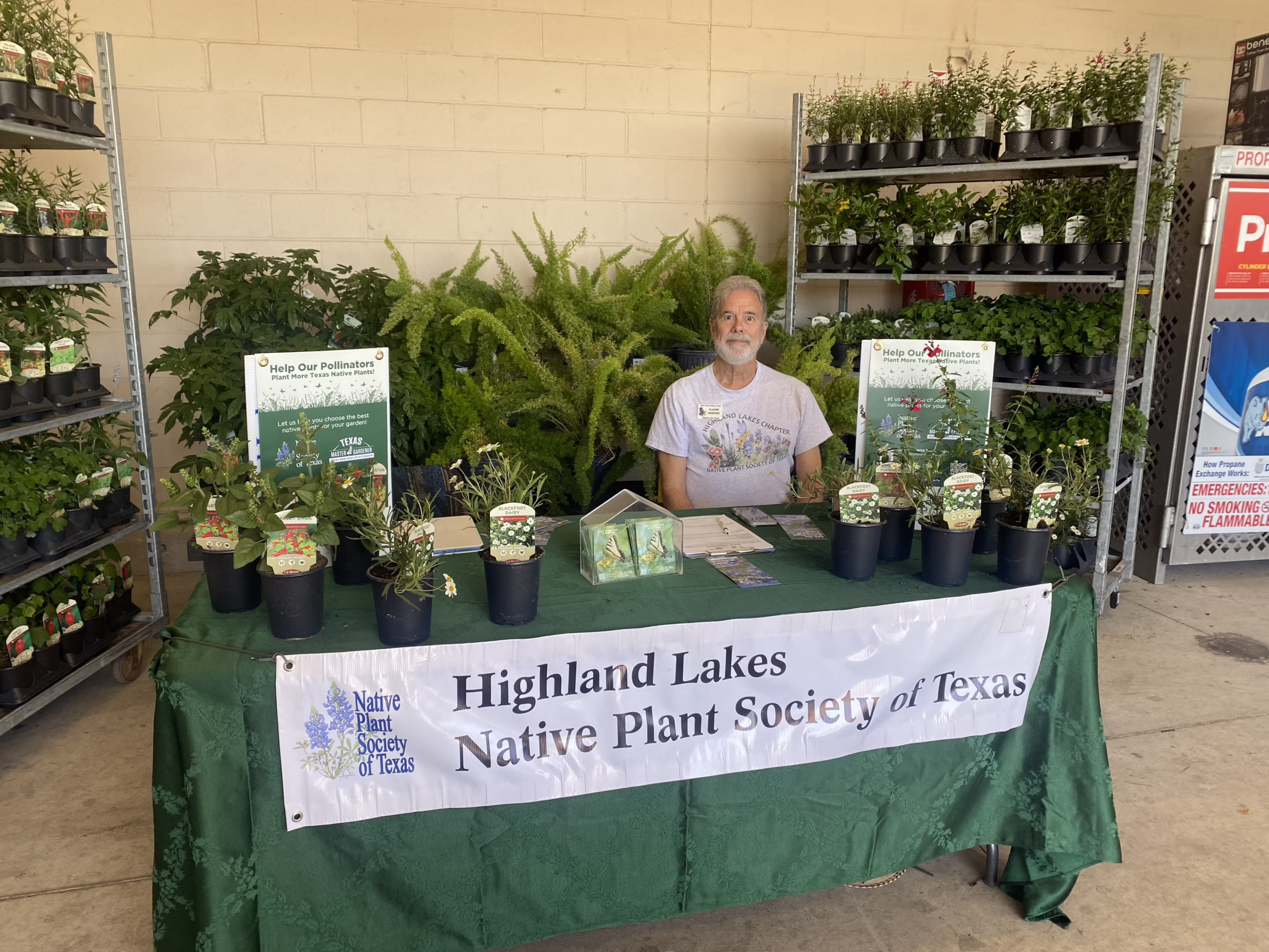 Claude Harding (pictured) and Fred Zagst visited with customers about native plants at the Marble Falls H-E-B today. Members will also be set up in Kingsland and Burnet next Sunday