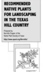 The plants in the pamphlet “Native Plants for Landscaping in the Texas Hill Country” were initially selected by members of the Kerrville Native Plant Society to provide a list of common and deer resistant plants that can be used for landscaping in the Kerrville and surrounding areas. Extremely handy and well-organized little booklet. Available for a suggested $2 donation at the Gift Shop of the Riverside Nature Center, at chapter meetings and at public outreach events