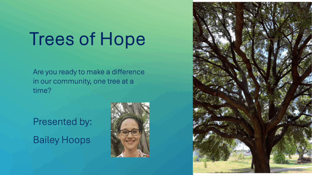 Drought, water restrictions and intense winter storms, oh my! Are you ready to plant some new native trees in your landscape? Looking to replace dead or fallen trees with natives that are beautiful to experience and vital to the wildlife in your neighborhood? Please join us as we discuss a wide variety of native trees including canopy and understory trees. You will learn tree characteristics, preferred growing conditions and how your tree choice can leave a legacy to the people and wildlife around you. Trees of Hope class offers choices so you can feel empowered to make a positive change in your yard, to better our community.