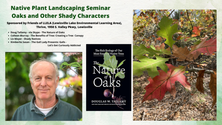 Doug Tallamy – via Skype – will address why oaks are a keystone plant and three additional on-site speakers will discuss tree canopies, oak galls and native plants that do well in the shade. After that, there will be a walking tour of the Thrive Nature Park led by Master Naturalist Diane Wetherbee.