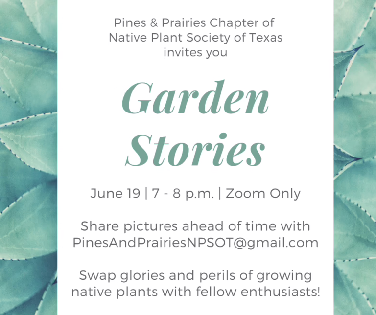 All members are invited to share current pictures of their garden and seek advice from the members! You can send 2 or 3 photos ahead of time to PinesandPrairiesNPSOT@gmail.com!