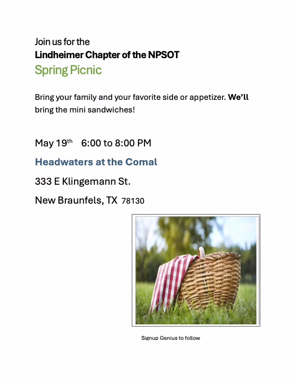 To keep up with what’s new at the Native Plant Society of Texas, subscribe to the state office email list. We won’t share your information with anyone.