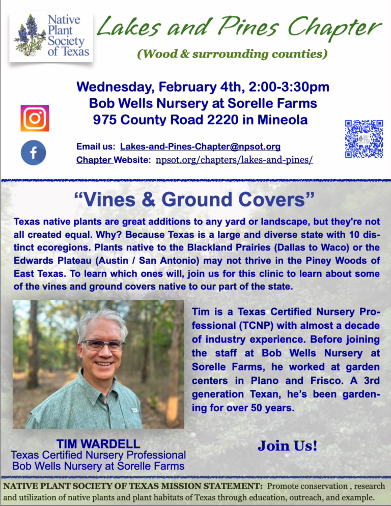 The Clear Lake Chapter’s Spring Plant Sale is scheduled for March 21, 2026.