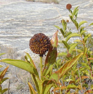 The Blackland Prairie extends from the Red River south to San Antonio, bordered on the west by the Edwards Plateau and the Cross Timbers, and on the east by the Post Oak Savannah. Annual rainfall averages 30 to 40 inches, with higher averages to the east. This region is dominated by prairie species. The most common grass species include little bluestem (Schizachyrium scoparium) and Indian grass (Sorghastrum nutans) in the uplands and switchgrass (Panicum virgatum) in the riparian areas and drainages. Common herbaceous flowering plants include salvias, penstemons, and silphiums. This area has suffered greatly from overgrazing and agricultural use. Few intact areas remain, though many of the plants can be found along county roadsides throughout the region.