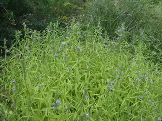 The Blackland Prairie extends from the Red River south to San Antonio, bordered on the west by the Edwards Plateau and the Cross Timbers, and on the east by the Post Oak Savannah. Annual rainfall averages 30 to 40 inches, with higher averages to the east. This region is dominated by prairie species. The most common grass species include little bluestem (Schizachyrium scoparium) and Indian grass (Sorghastrum nutans) in the uplands and switchgrass (Panicum virgatum) in the riparian areas and drainages. Common herbaceous flowering plants include salvias, penstemons, and silphiums. This area has suffered greatly from overgrazing and agricultural use. Few intact areas remain, though many of the plants can be found along county roadsides throughout the region.