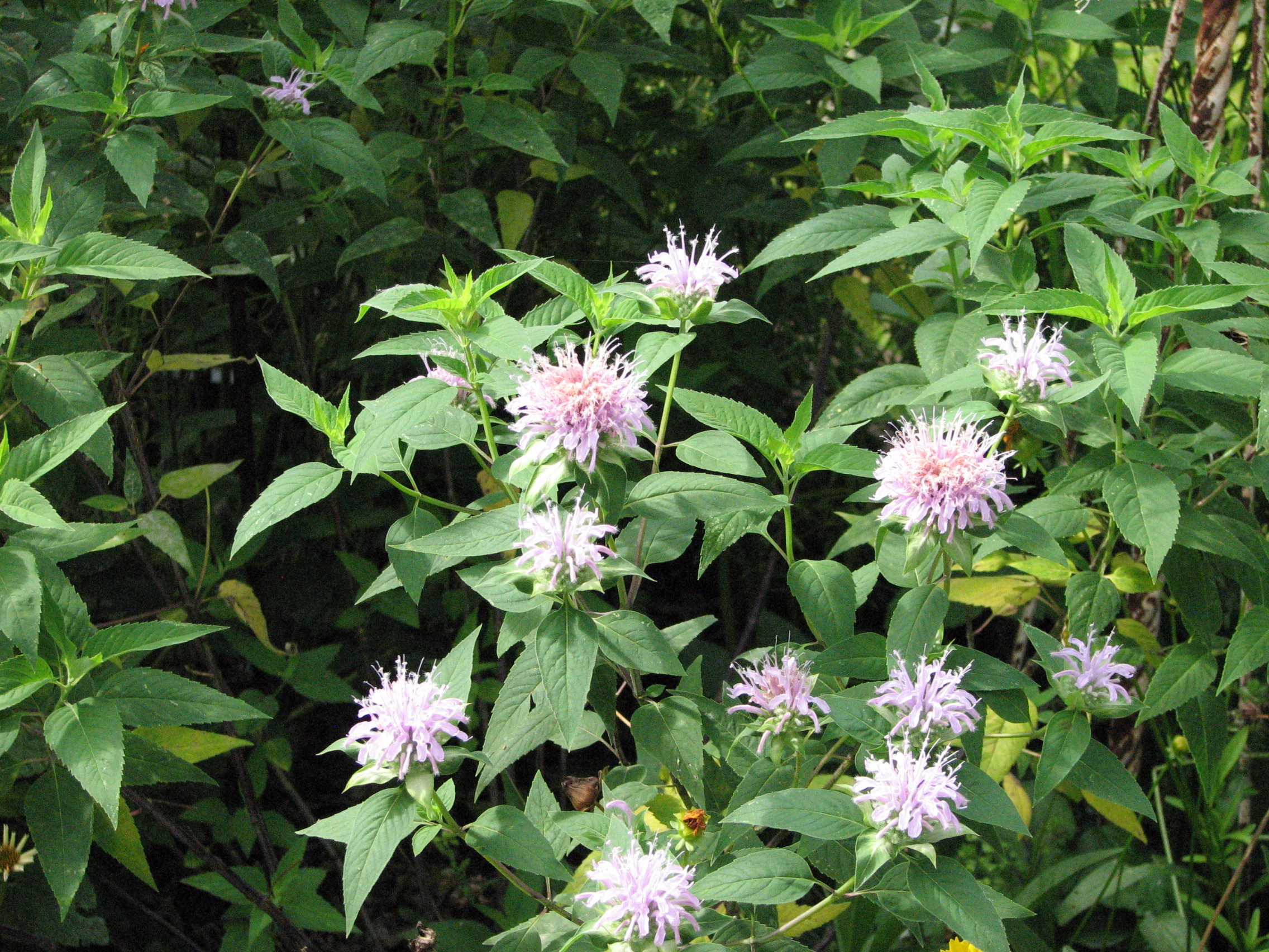 Blooms May-October. Produces oval to lance-shaped leaves, hairy, serrated edges, with minty fragrant minty. The pink flowers resemble loose pompoms. It often occurs in large masses. The fruit is a brown nutlet.