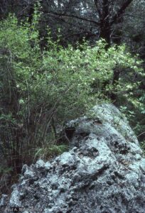 Drought and heat tolerant once established. Flowers smell like orange blossoms making it an excellent plant near outside living areas. Doesn’t tolerate wet soil. May be pruned for denser growth soon after flowering. Endemic and rare plant to the Edwards Plateau ecoregion, but is available in some nurseries and NPSOT plant sales. May need extra care when grown outside of its native range. Propagation: softwood cutting, hardwood cutting,