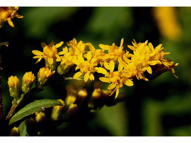 Blooms August-November. Highly variable form. Tall, rough, hairy stem bears divergent, or arching, branches with small, light yellow flower heads concentrated on the upper side. Sprays of arching flowering stems occur at the top of erect stems. The numerous, narrow, toothed leaves are rough-surfaced.