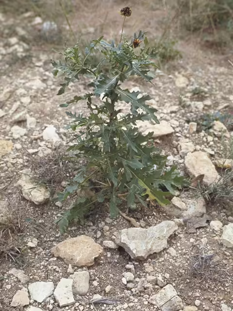 Blooms April-September. Upright, multi-branched, bushy form. Lance-shaped to oval leaves with deeply lobed margins. Upper leaf bases are fused together around the stem and lower leaves either have short stalks or are clasping the stem. Daisy-shaped, single flowers occur at the end of stems, with sparse, yellow rays and brown disc flowers in the center. The plant gets its name from it’s characteristic square buds. The fruit is a cypsela: a dry, one-seeded fruit, usually topped by pappus. Insects are attracted to nectar.