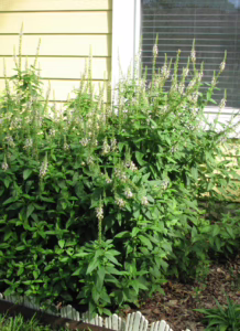 Blooms May-October. Upright growth form with a downy square stem. Terminal, spike-like clusters of showy, lavender-pink flowers, blooming from the bottom up. Aromatic, lance-shaped to oval leaves with toothed margins. The fruit is a round, yellowish-brown, nutlet. The foliage is unappealing to grazing animals because of its bitter taste.