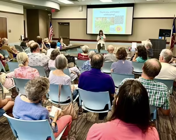 Thank you to Lauren Simpson for her amazing and entertaining presentation “Creating a Pollinator Paradise” last month. Over 60 native plant enthusiasts were in attendance, free native seeds from Lauren,