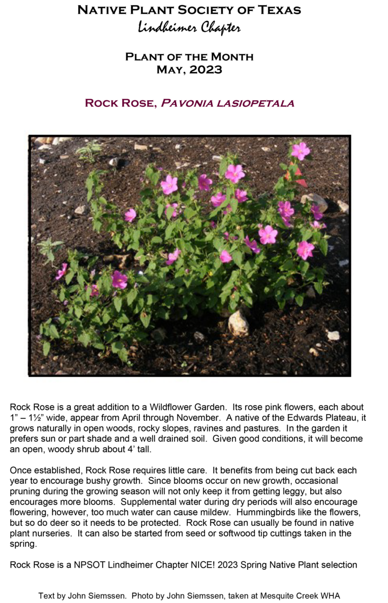 Home » Lindheimer » Plant of the Month May